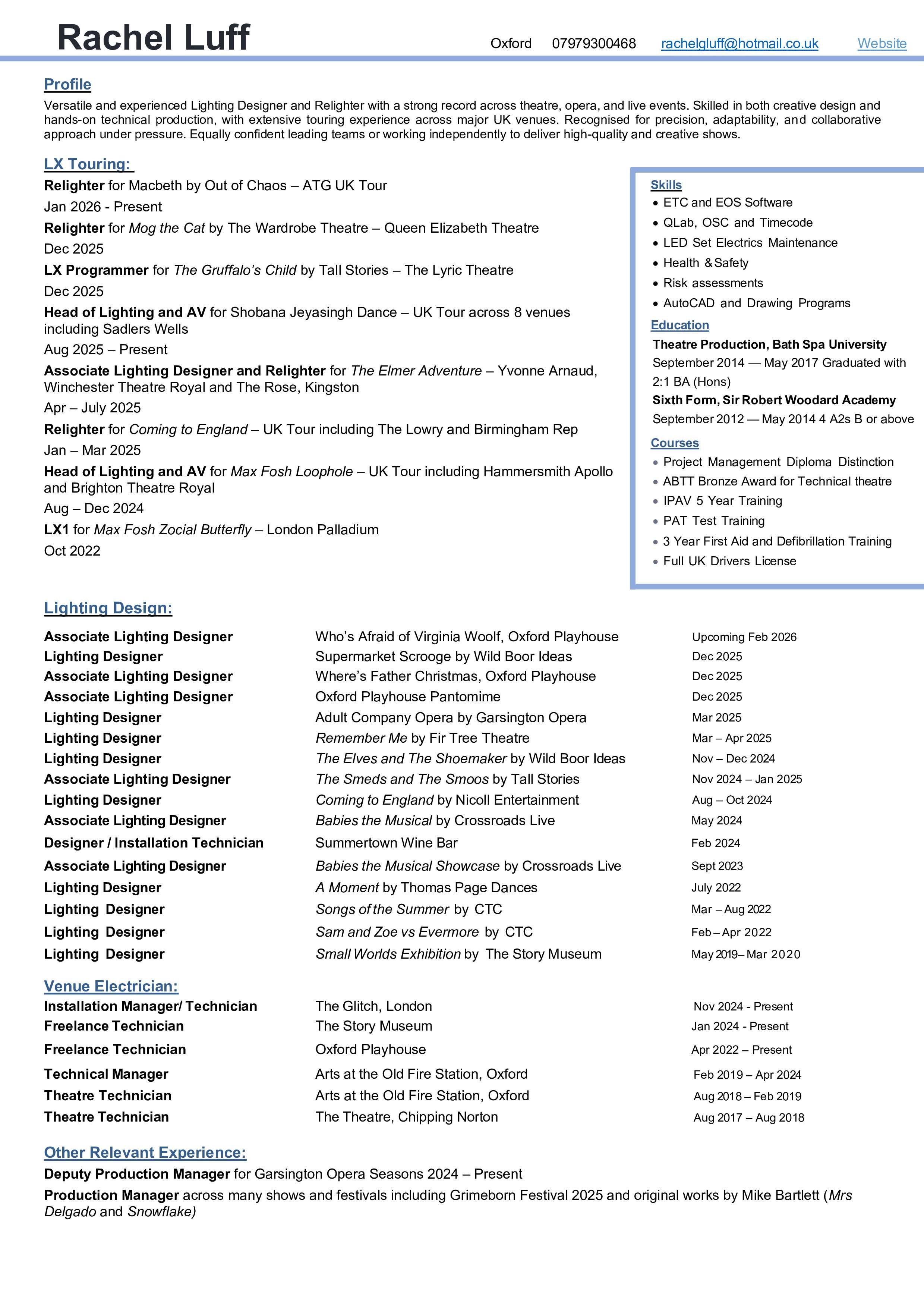Rachel Luff - Lighting Designer